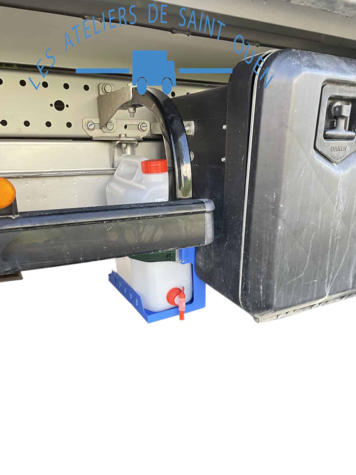 - ALL IN ONE : dévidoir + bidon + distributeur regroupés dans un seul élément fixé dans le véhicule ou transportable.
