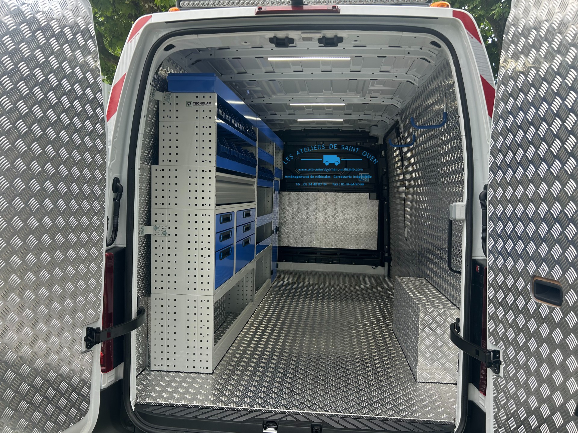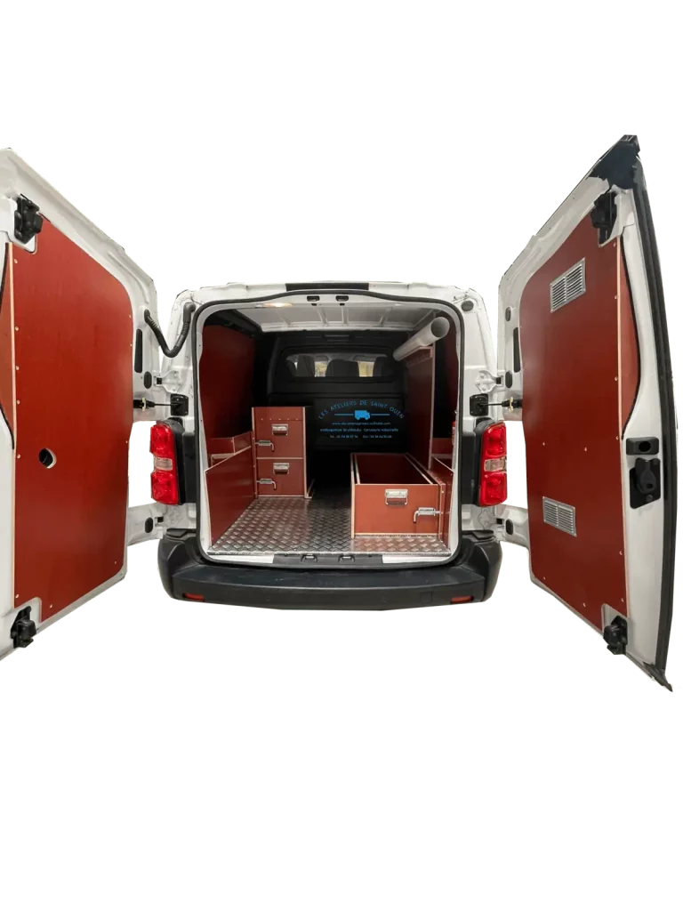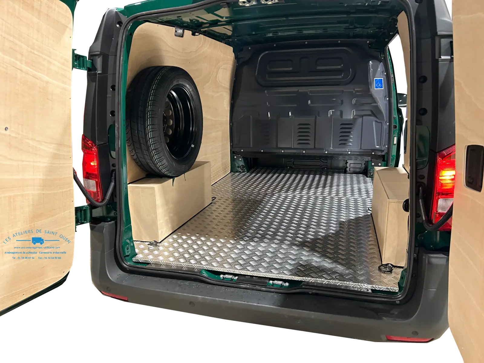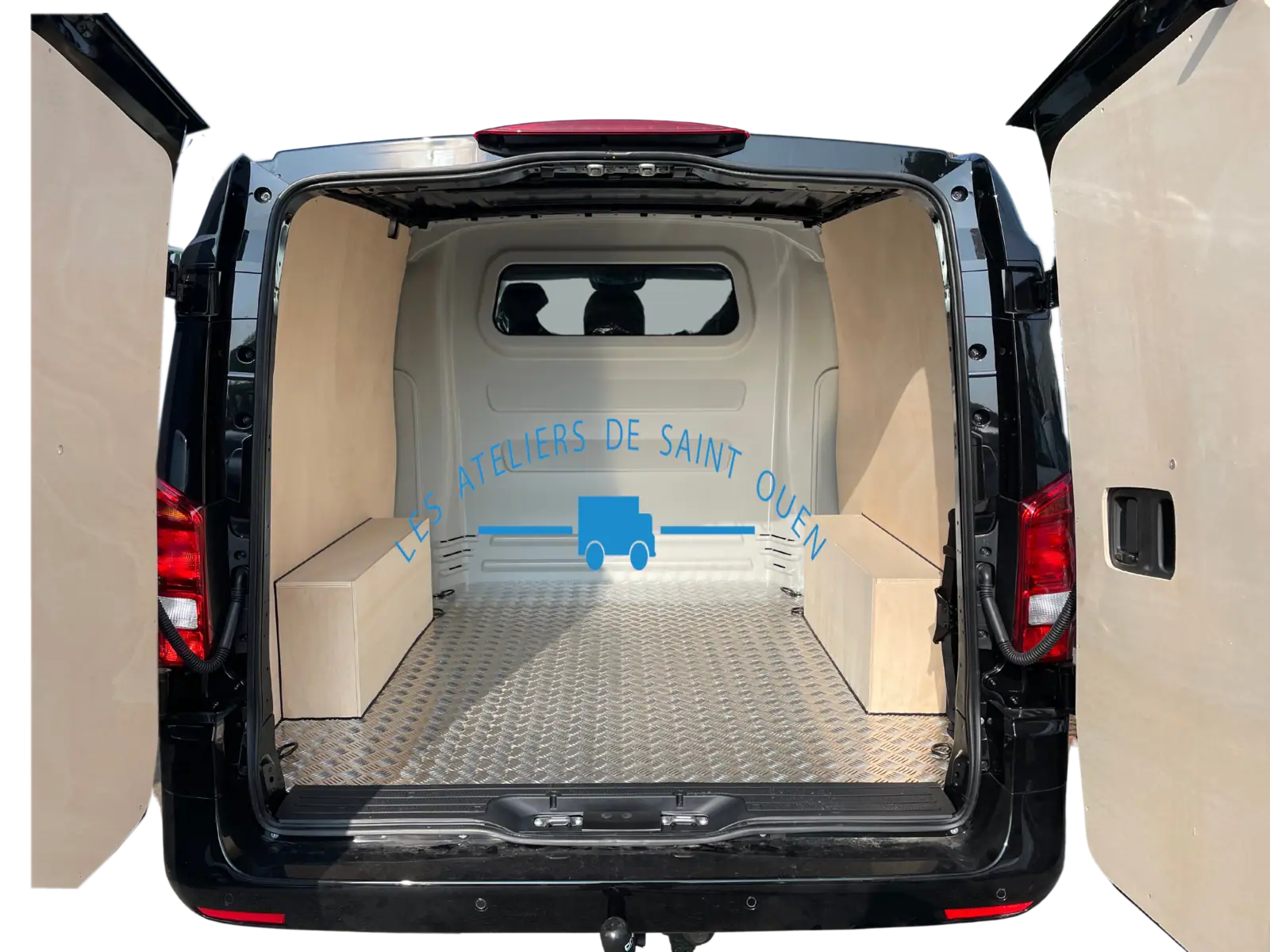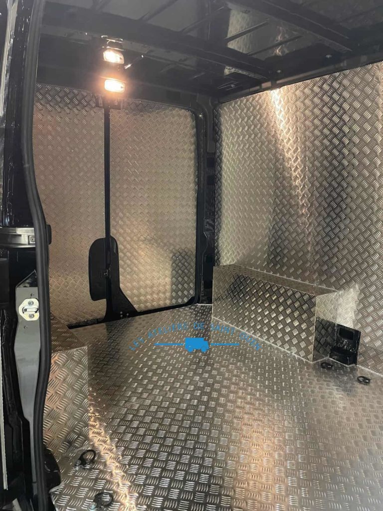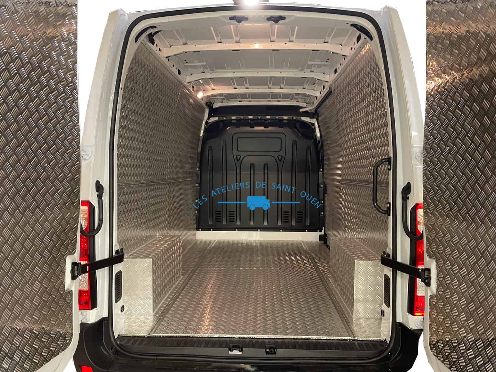 Les Ateliers de Saint-Ouen vous proposent un aménagement sur mesure en aluminium strié, épaisseur 2/3,2 mm, idéal pour les professionnels transportant des charges lourdes ou des matières réglementées.