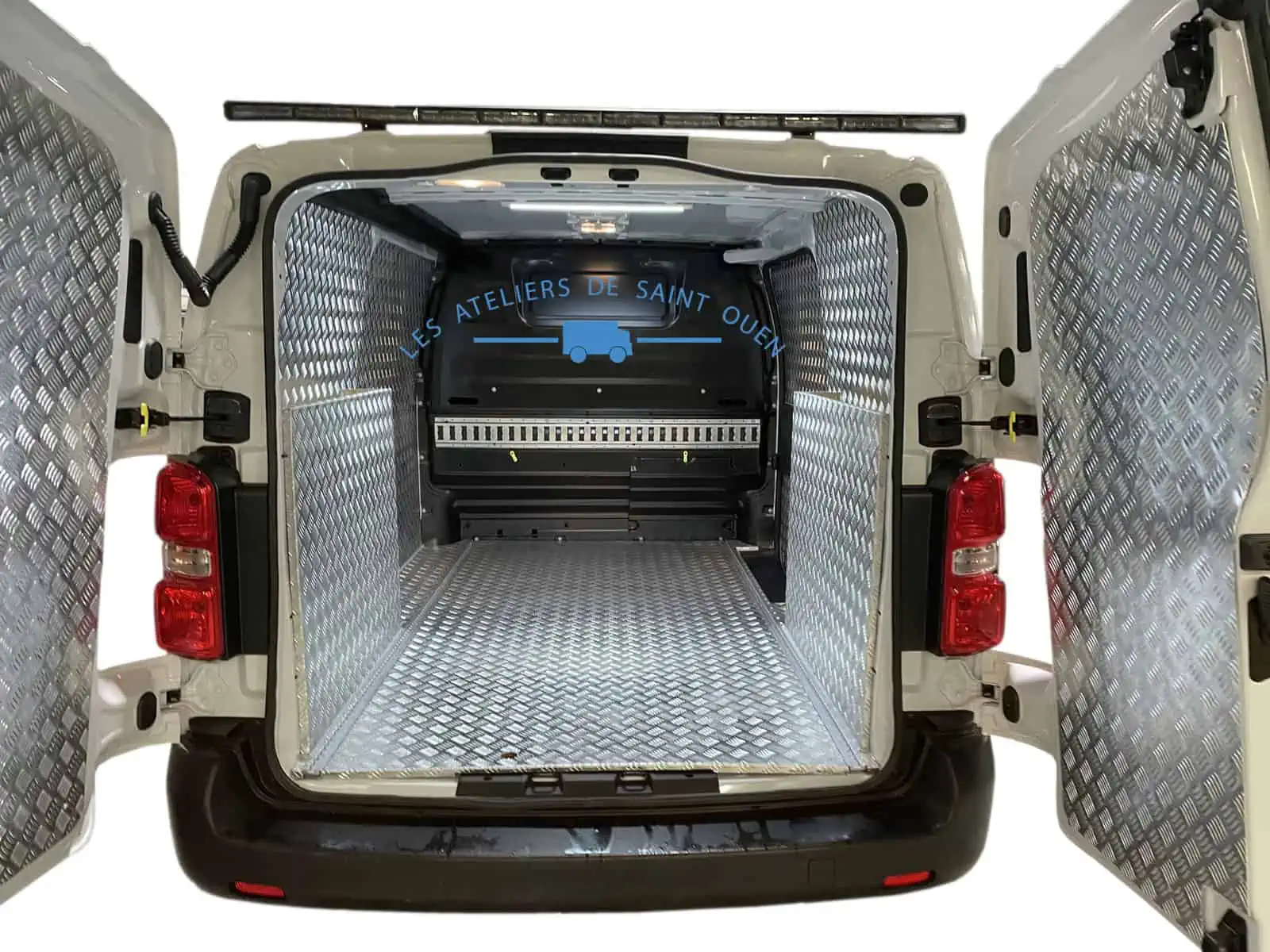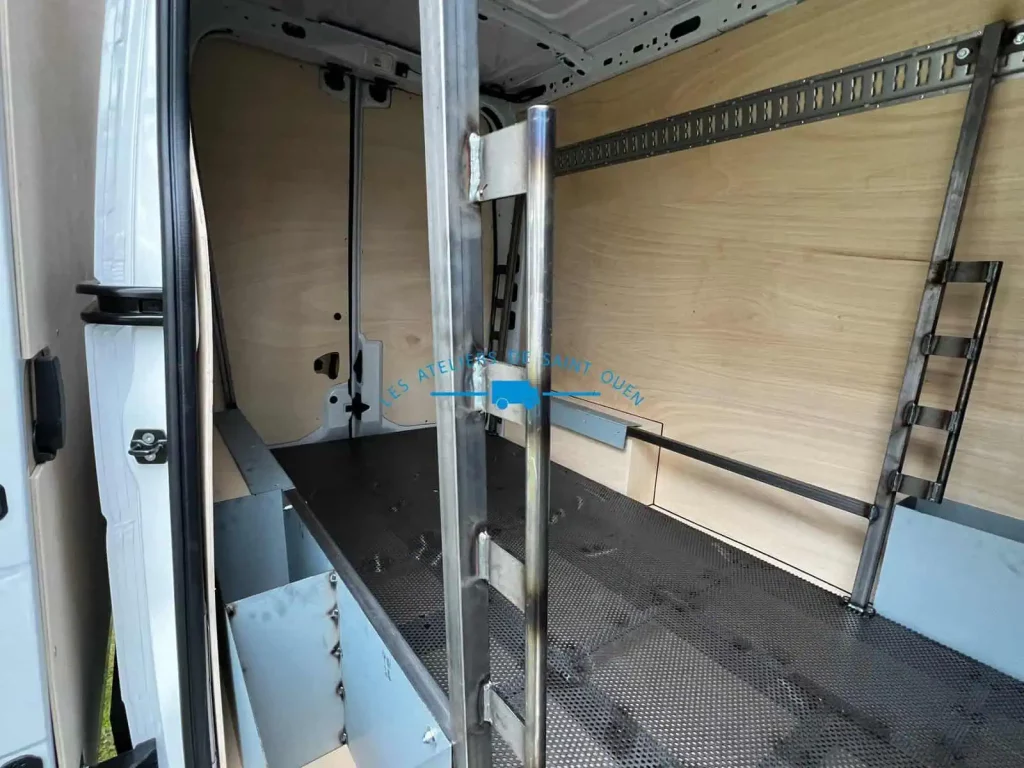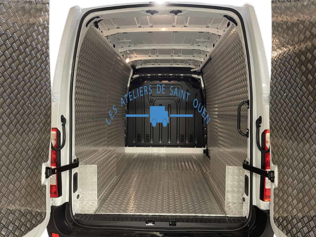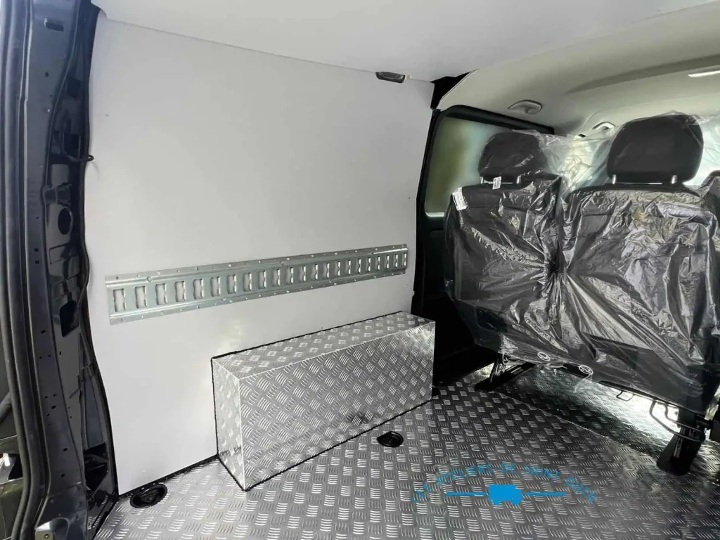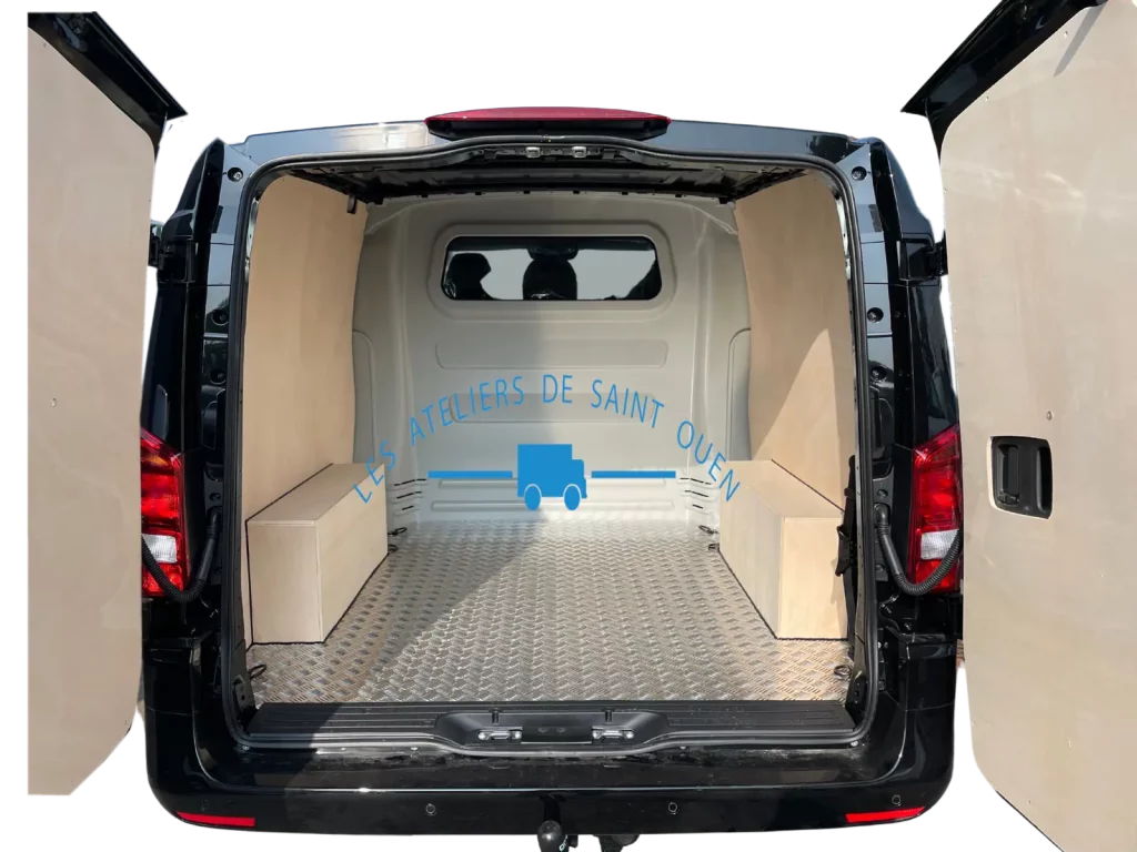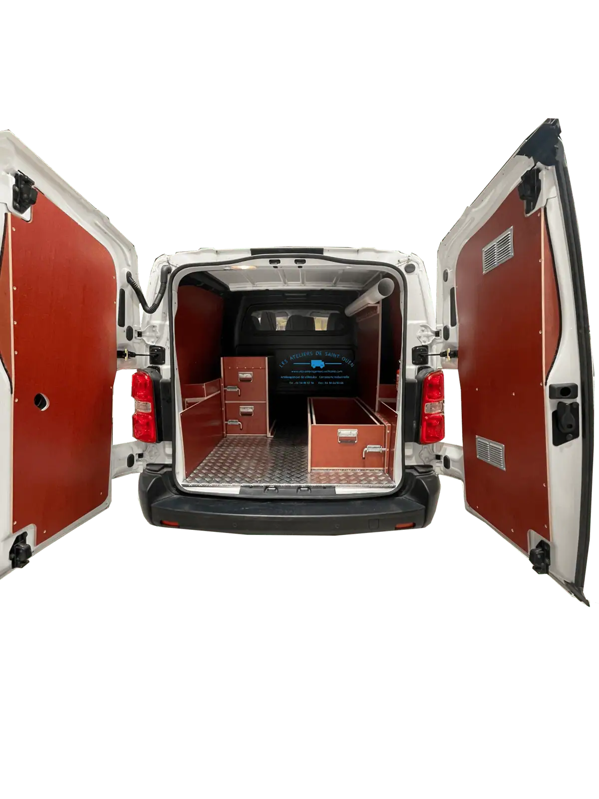 Les Ateliers de Saint-Ouen vous proposent un aménagement sur mesure en aluminium strié, épaisseur 2/3,2 mm, idéal pour les professionnels transportant des charges lourdes ou des matières réglementées.