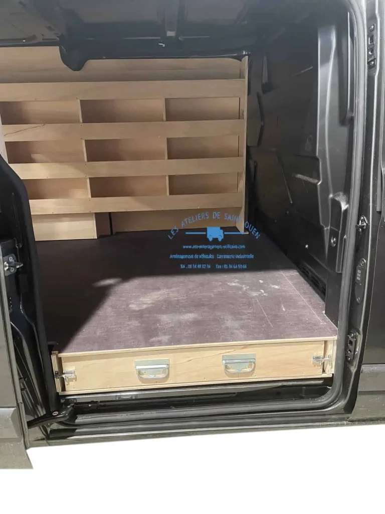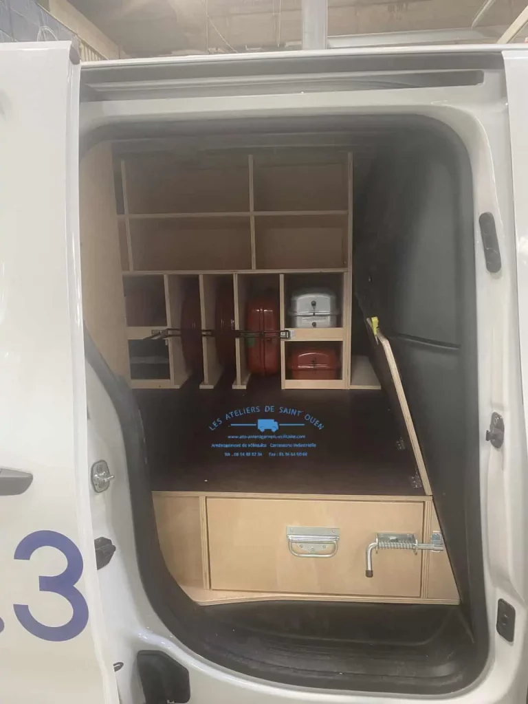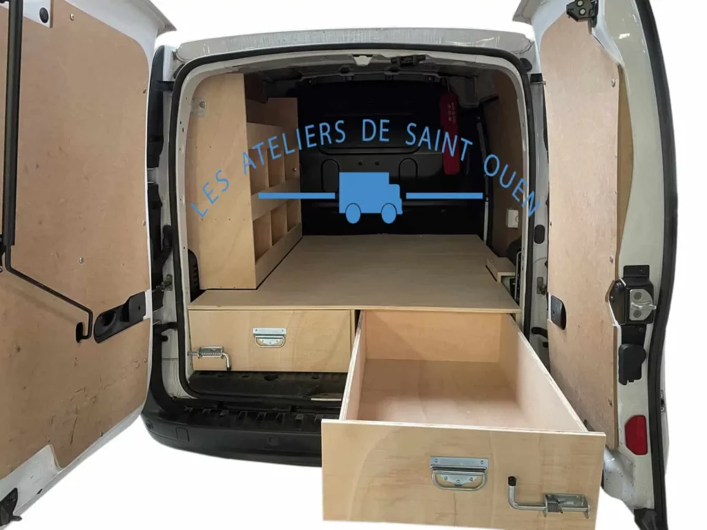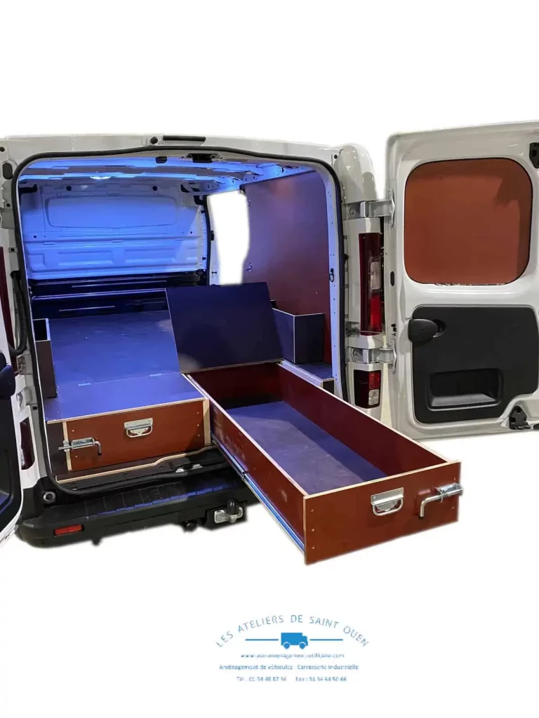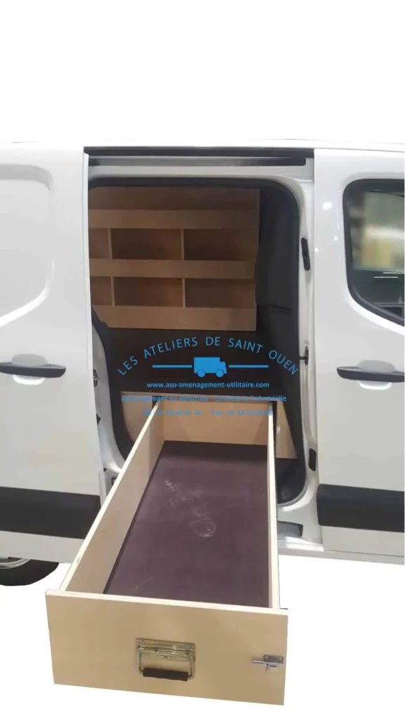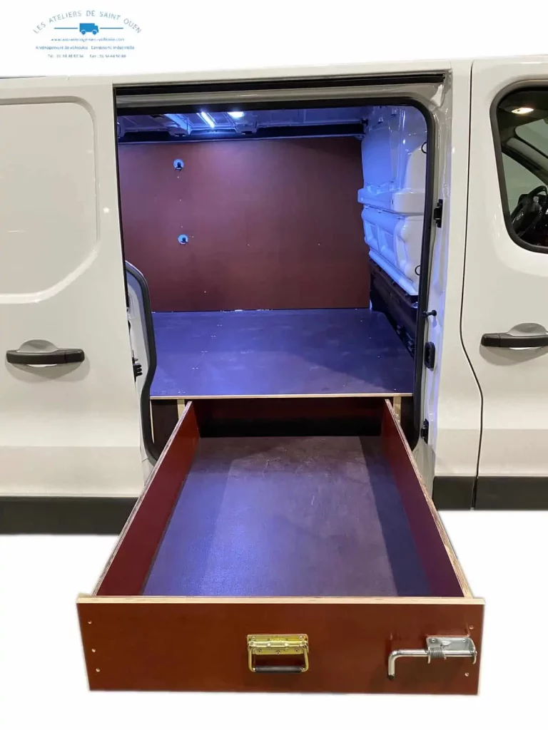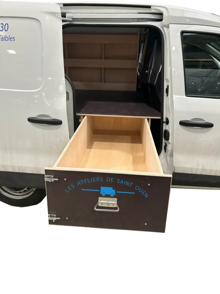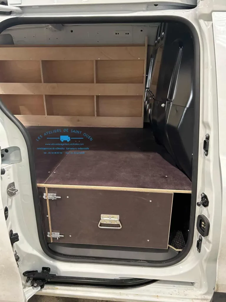 Pour optimiser au maximum l’espace de chargement de votre véhicule utilitaire, Les Ateliers de Saint Ouen vous proposent l’installation d’un double plancher avec ou sans tiroir dans votre fourgon.