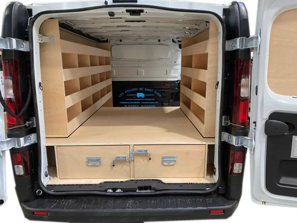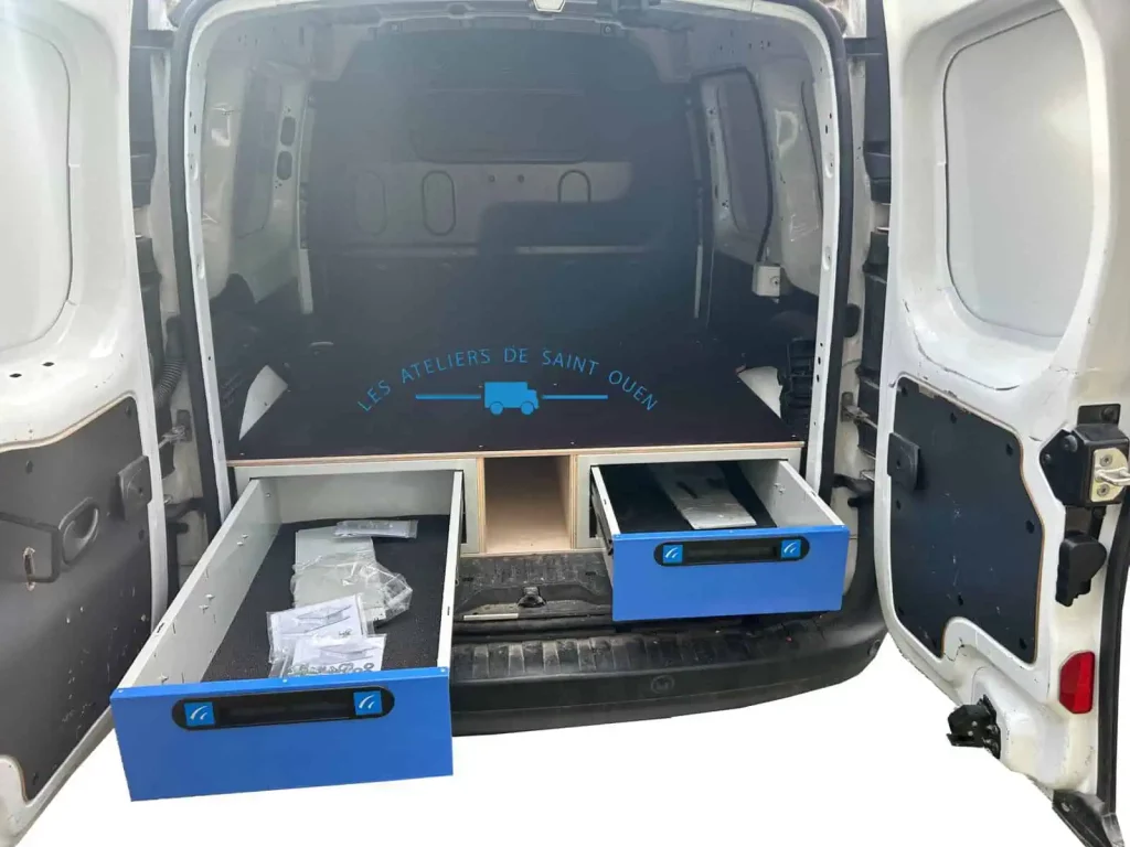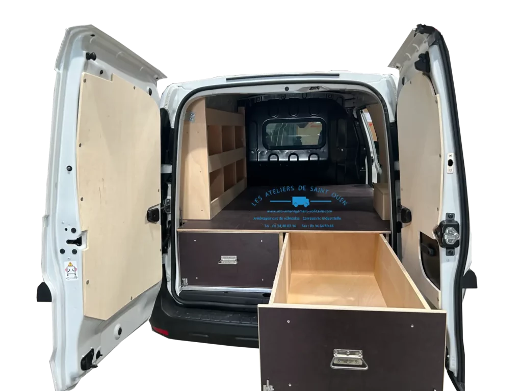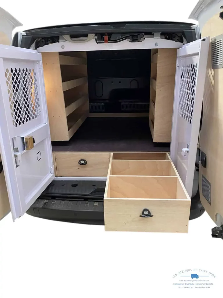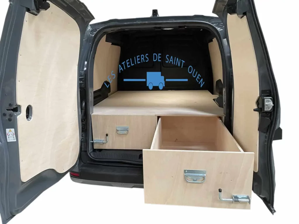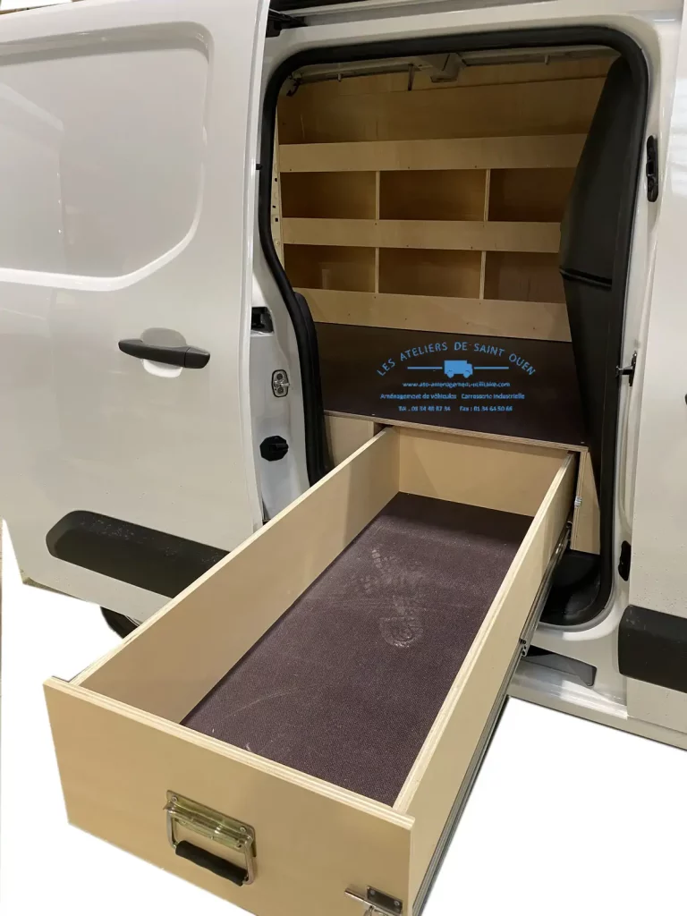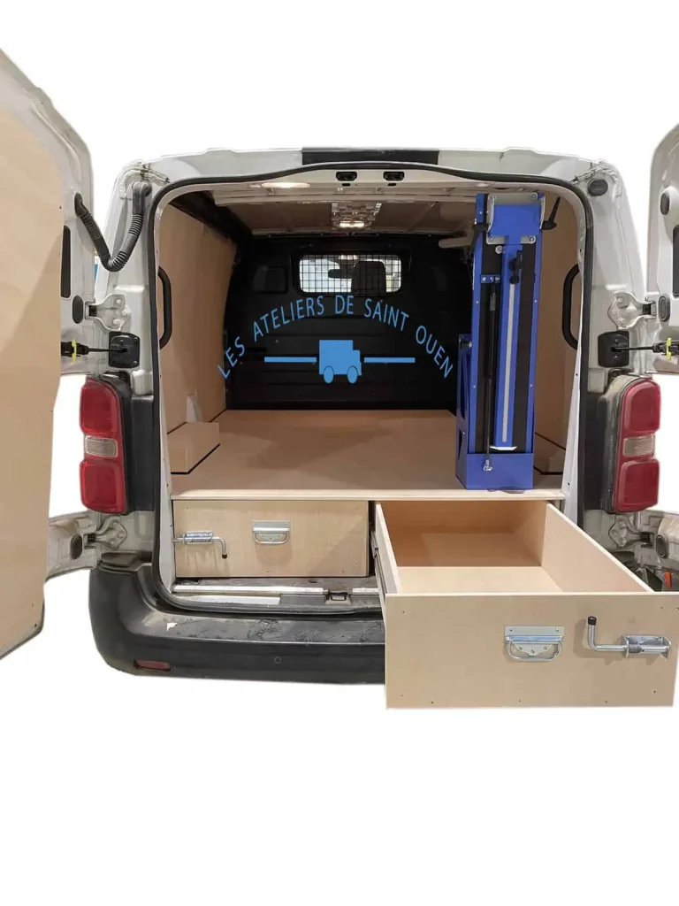 Pour optimiser au maximum l’espace de chargement de votre véhicule utilitaire, Les Ateliers de Saint Ouen vous proposent l’installation d’un double plancher avec ou sans tiroir dans votre fourgon.