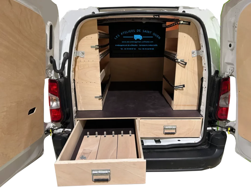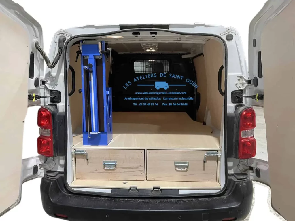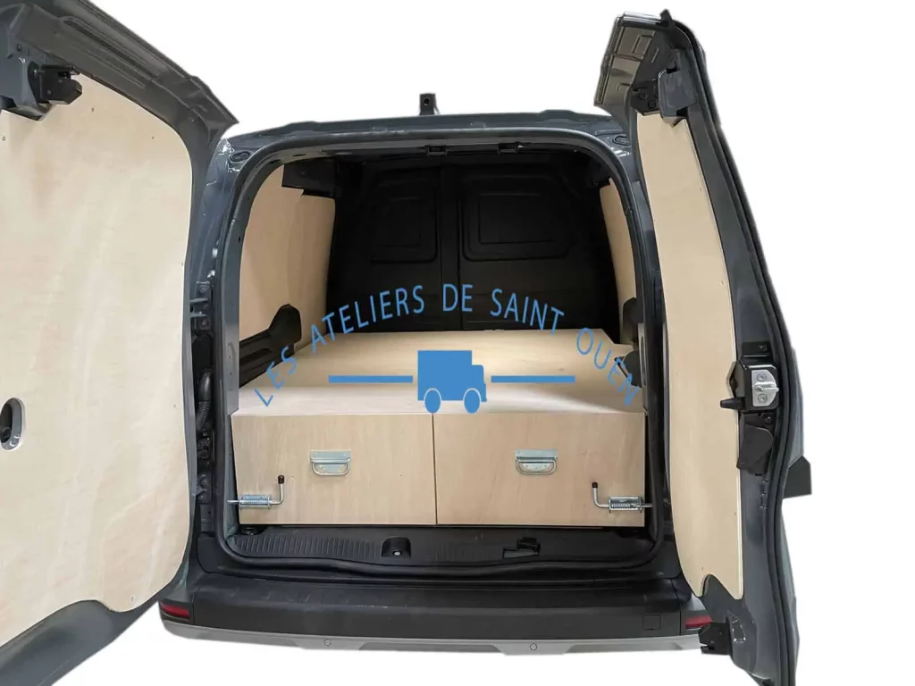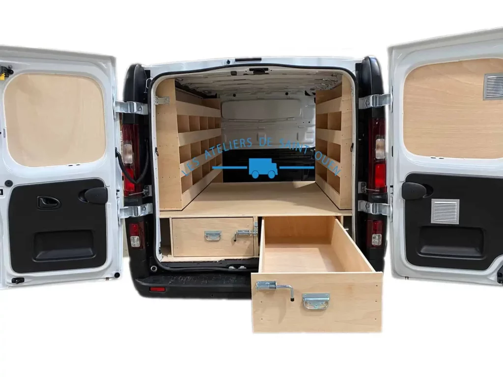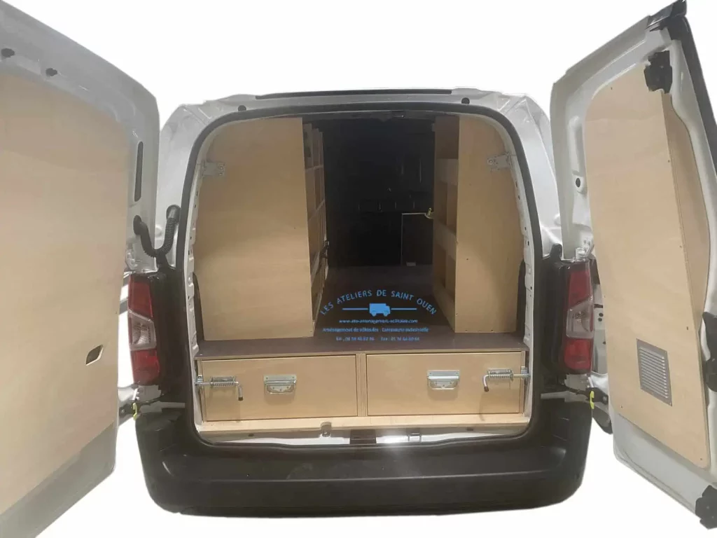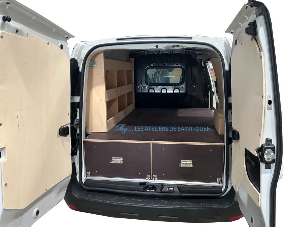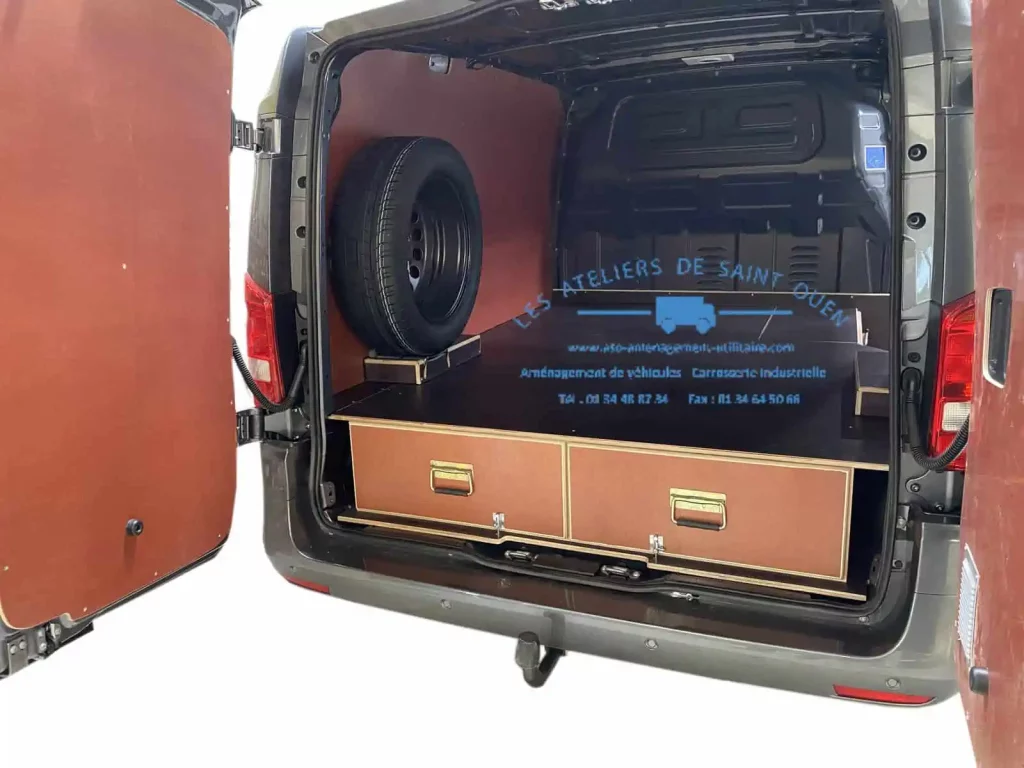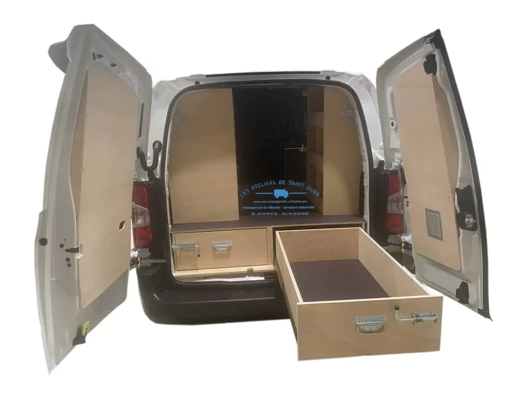Pour optimiser au maximum l’espace de chargement de votre véhicule utilitaire, Les Ateliers de Saint Ouen vous proposent l’installation d’un double plancher avec ou sans tiroir dans votre fourgon.