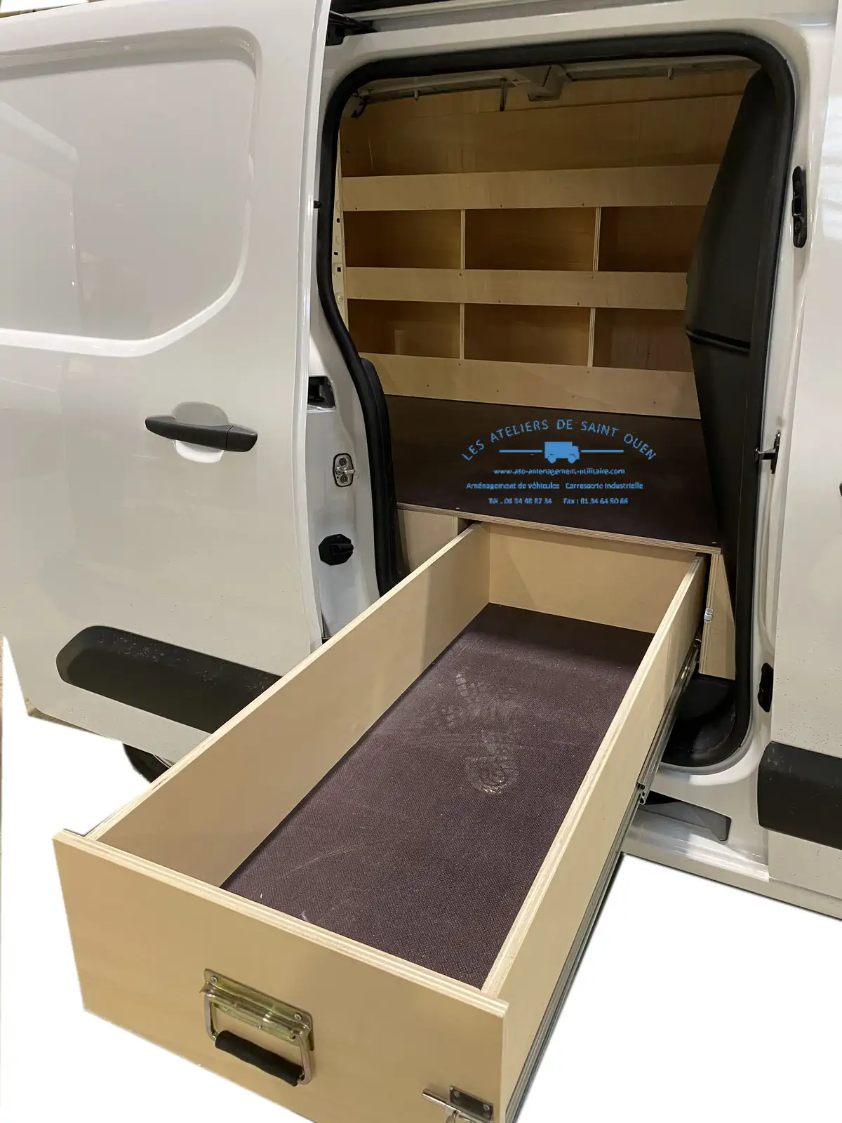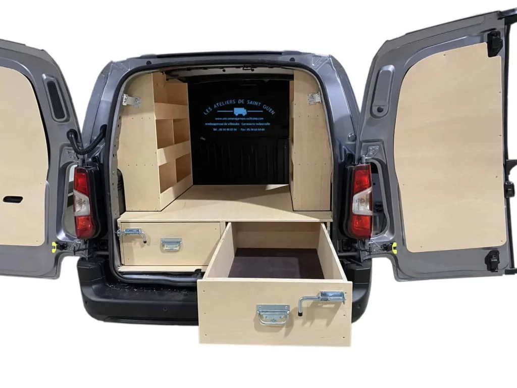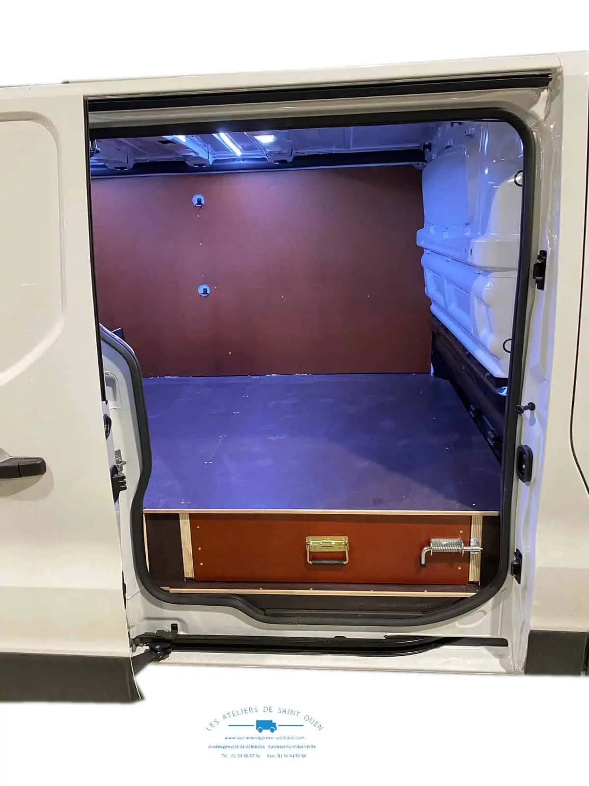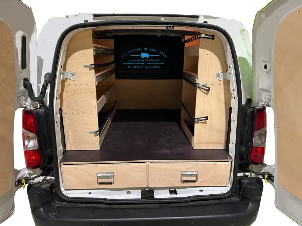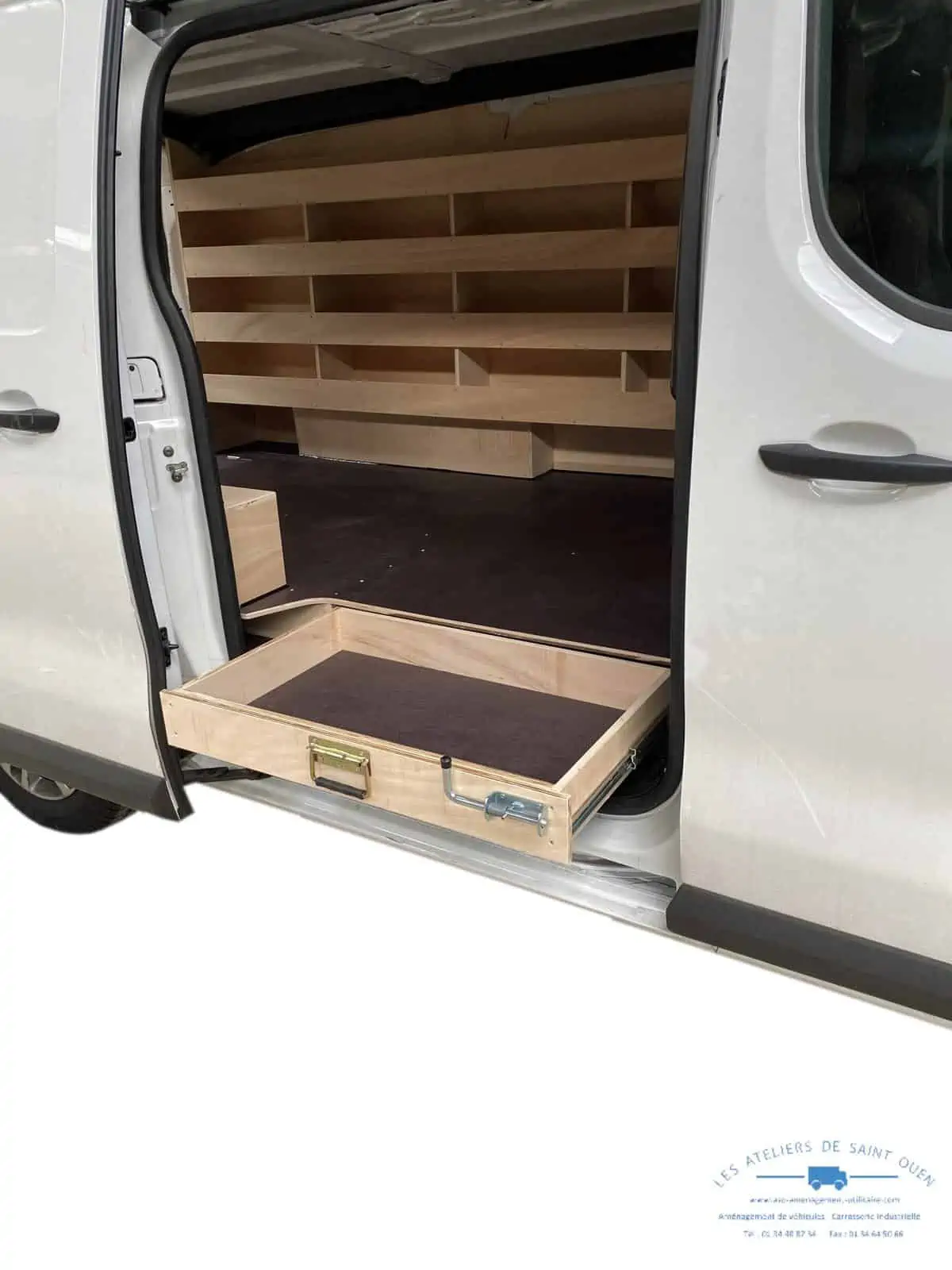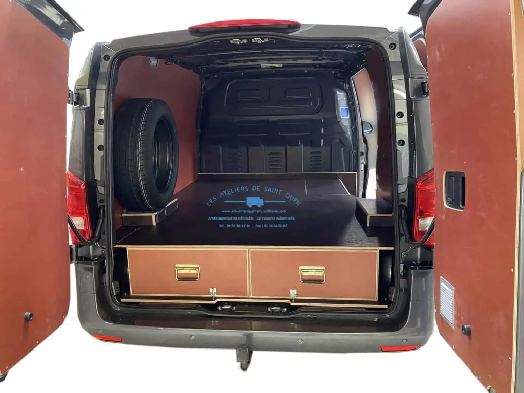 Pour optimiser au maximum l’espace de chargement de votre véhicule utilitaire, Les Ateliers de Saint Ouen vous proposent l’installation d’un double plancher avec ou sans tiroir dans votre fourgon.