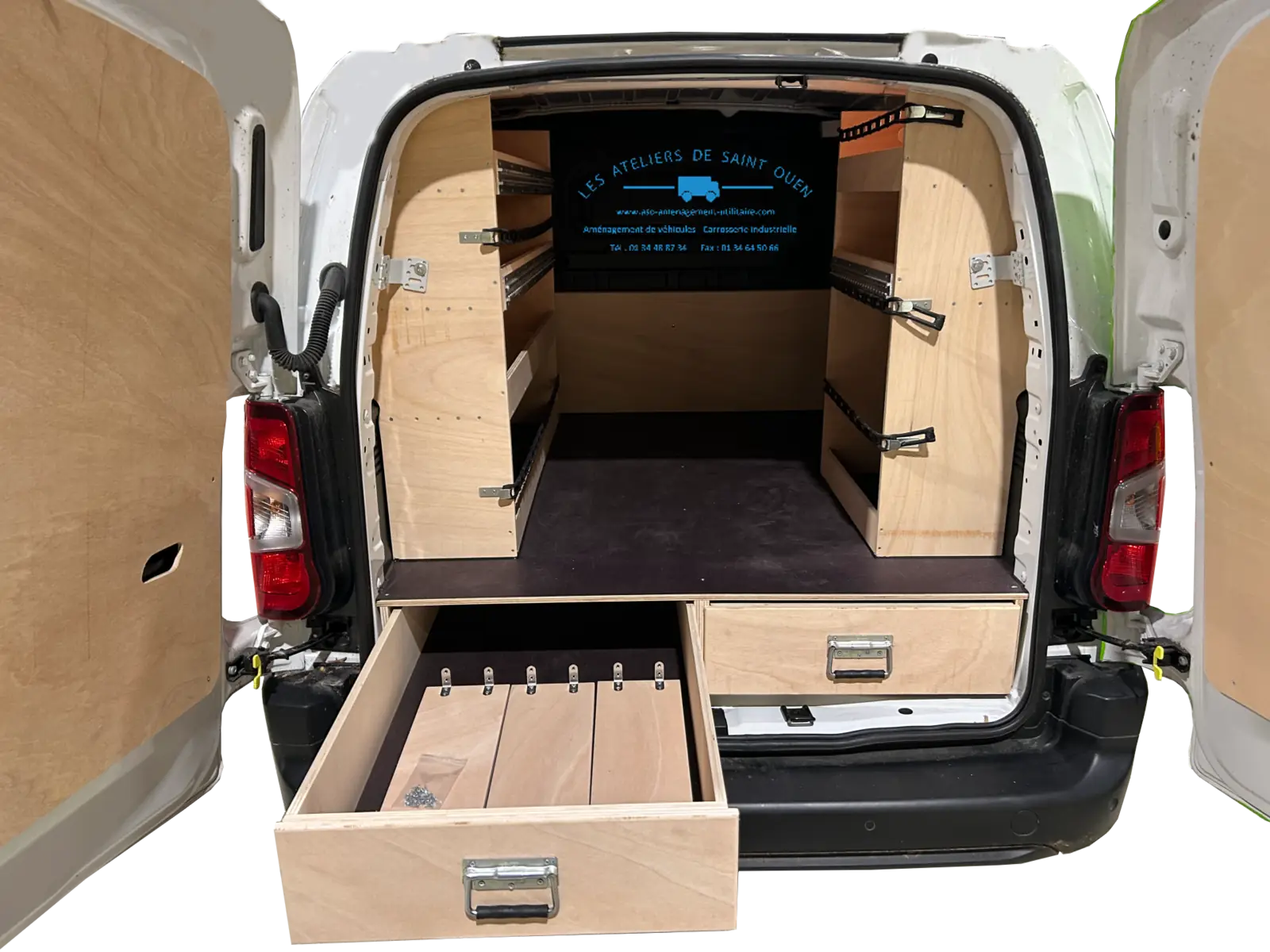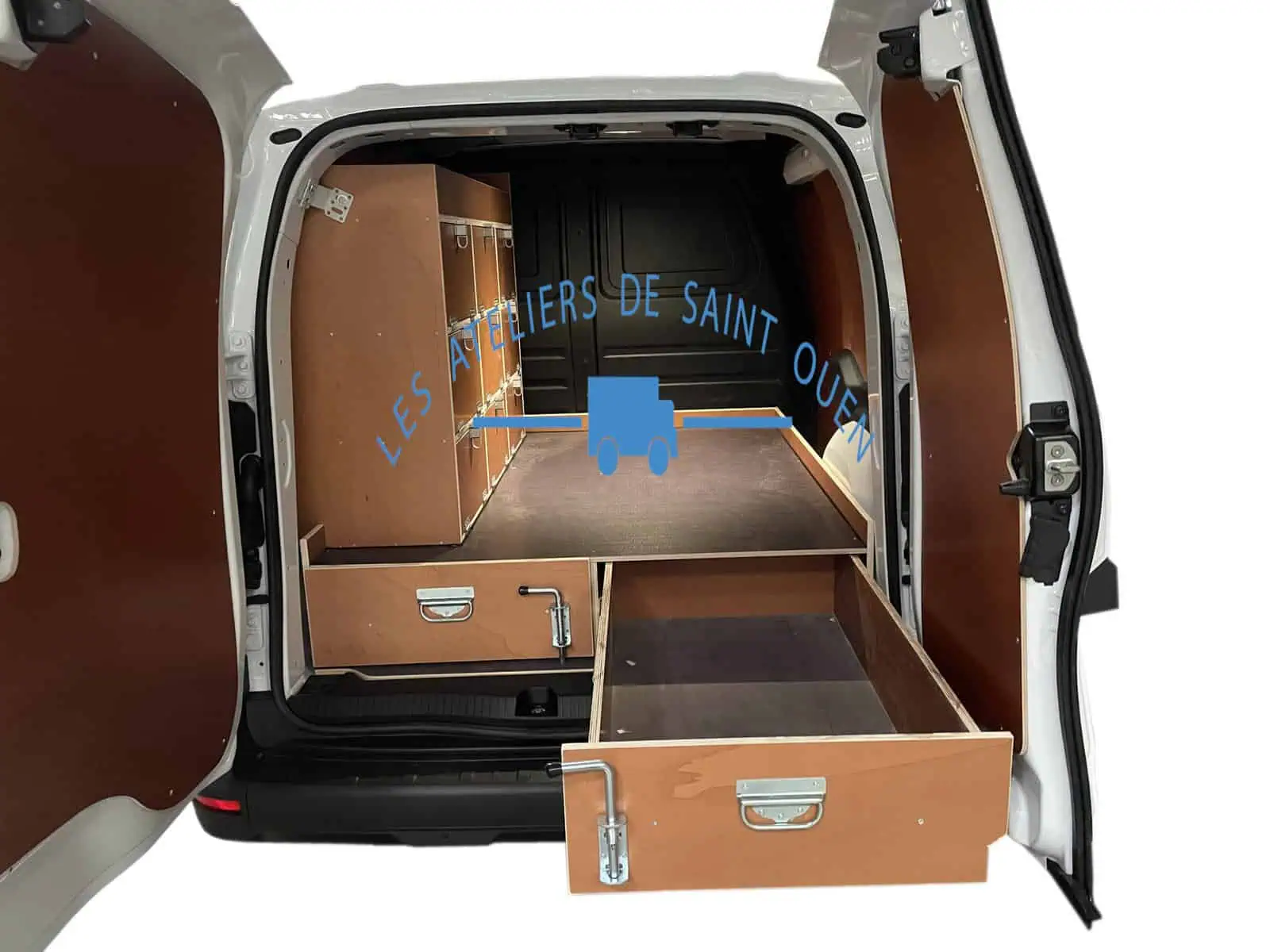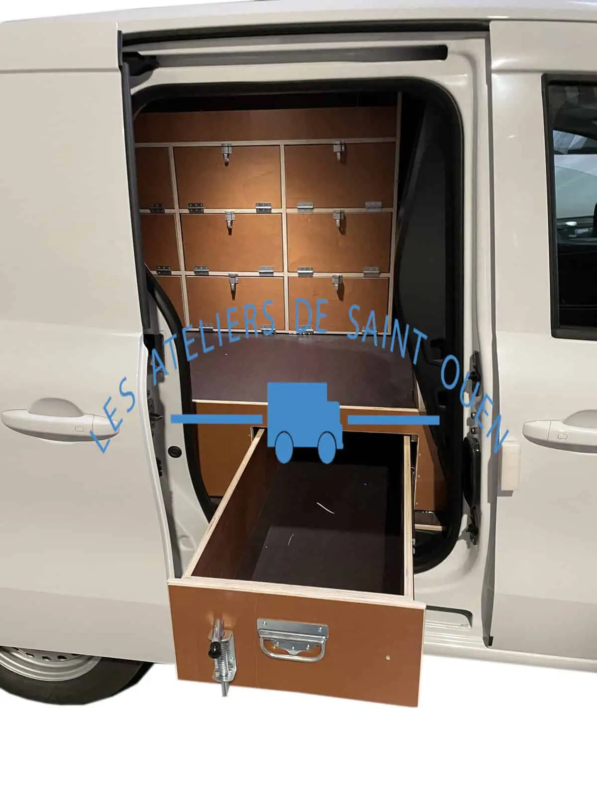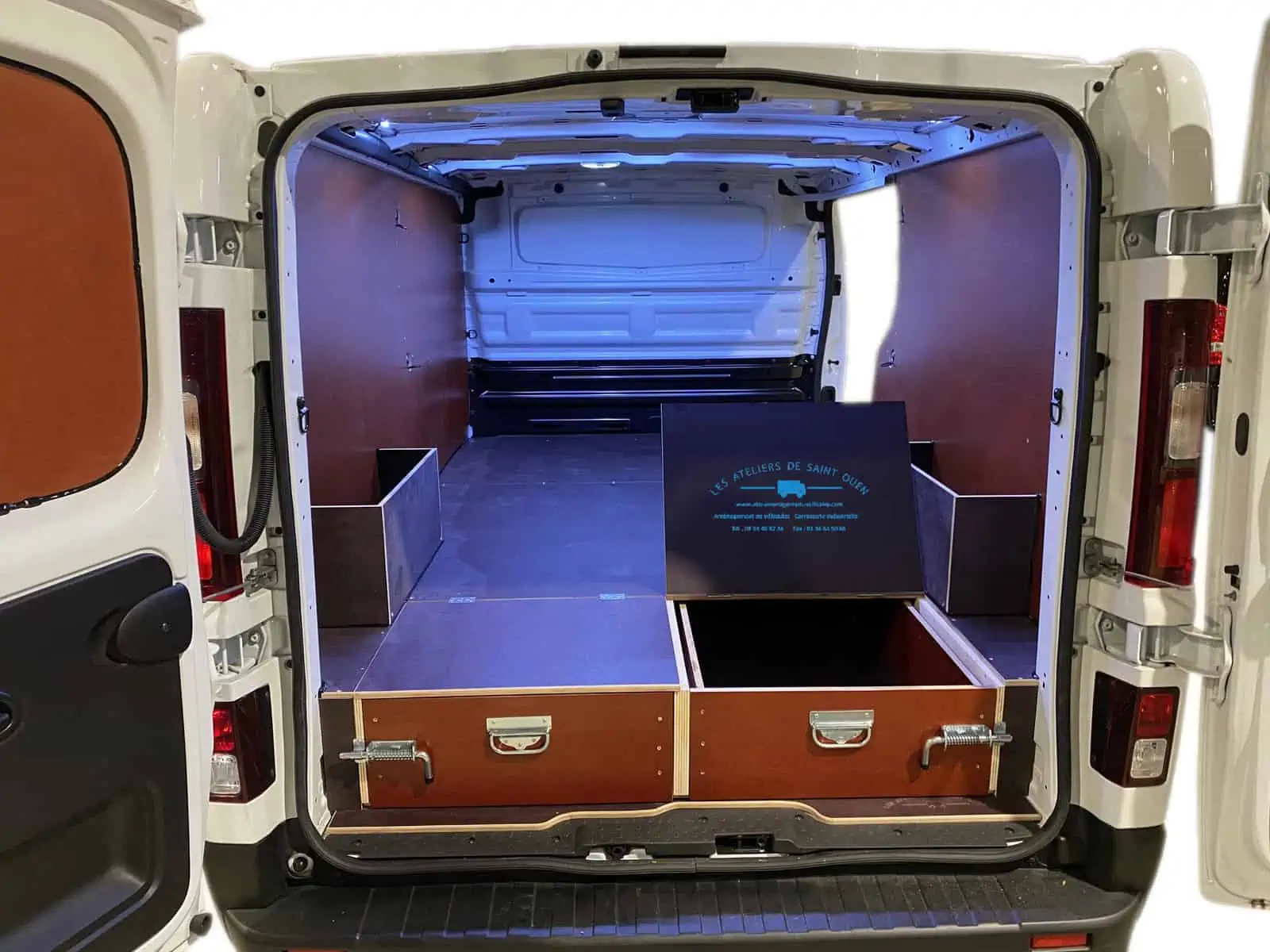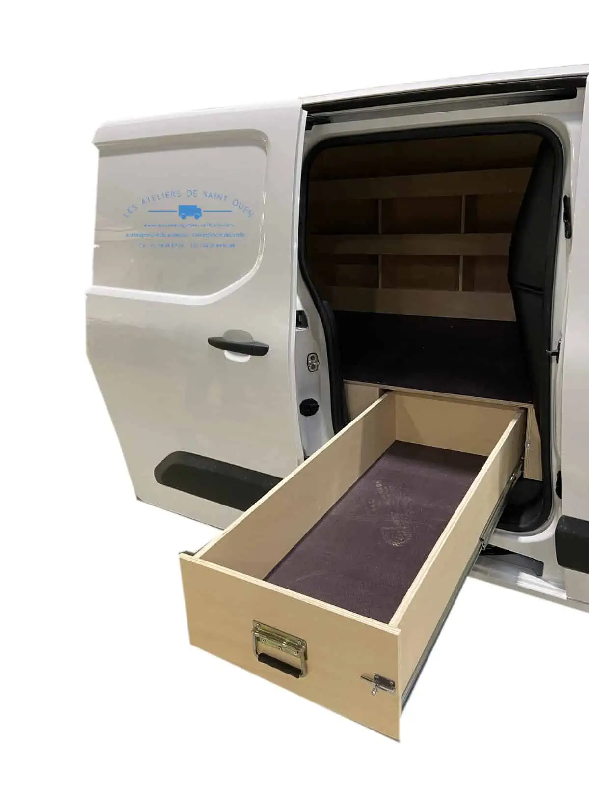 Pour optimiser au maximum l’espace de chargement de votre véhicule utilitaire, Les Ateliers de Saint Ouen vous proposent l’installation d’un double plancher avec ou sans tiroir dans votre fourgon.